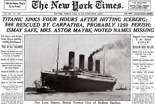 Svet je bio u šoku, neverici. "Titanik" je bio ponos britanske mornarice, tada najveći brod na svetu, ploveći dvorac. Mogao je da primi tri hiljade ljudi. Konstruktori su tvrdili da je nepotopiv: imao je duplo dno, 16 odvojenih komora. Plovio je brzinom do 48,6 kilometara na sat.